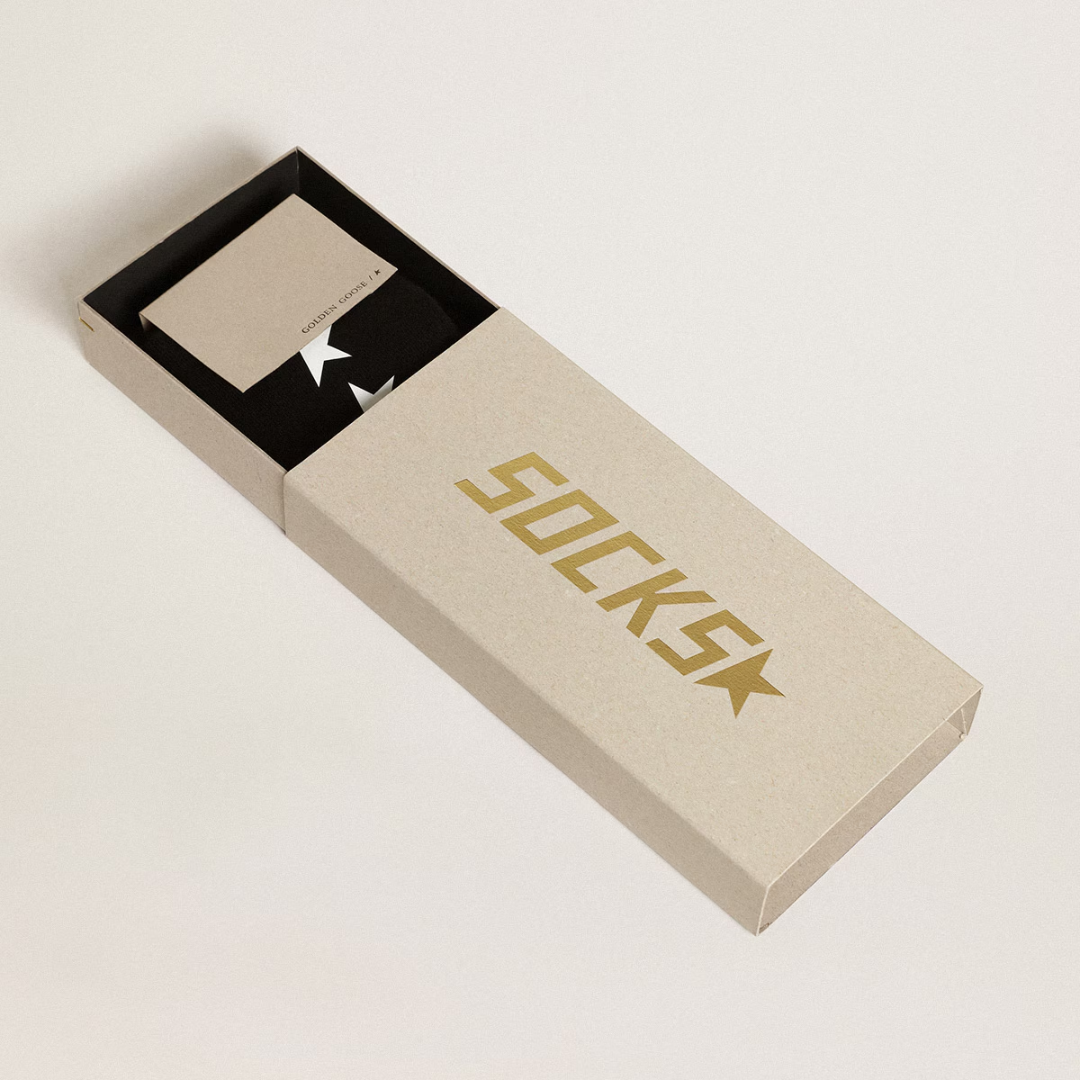 Black socks with contrasting white stars.