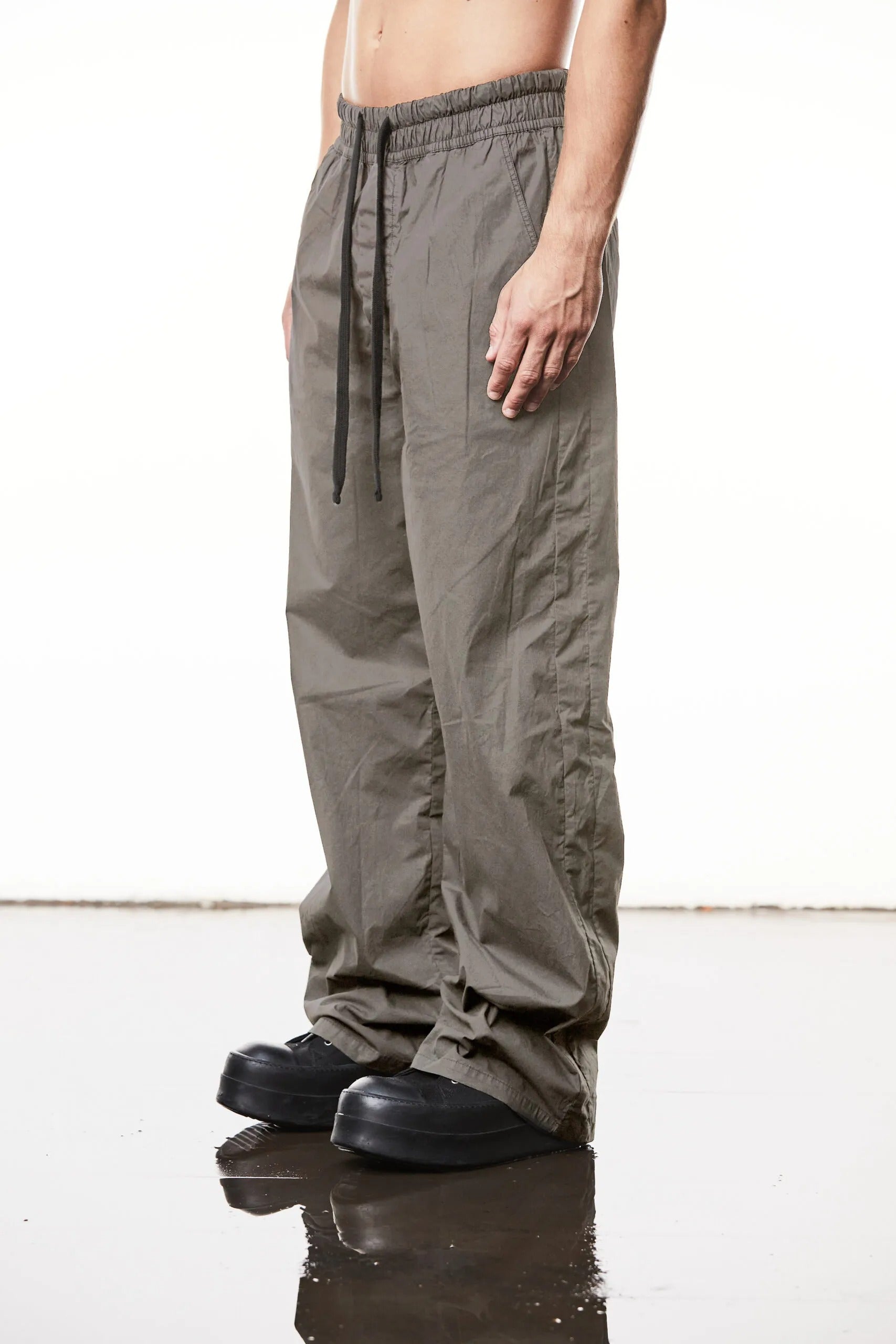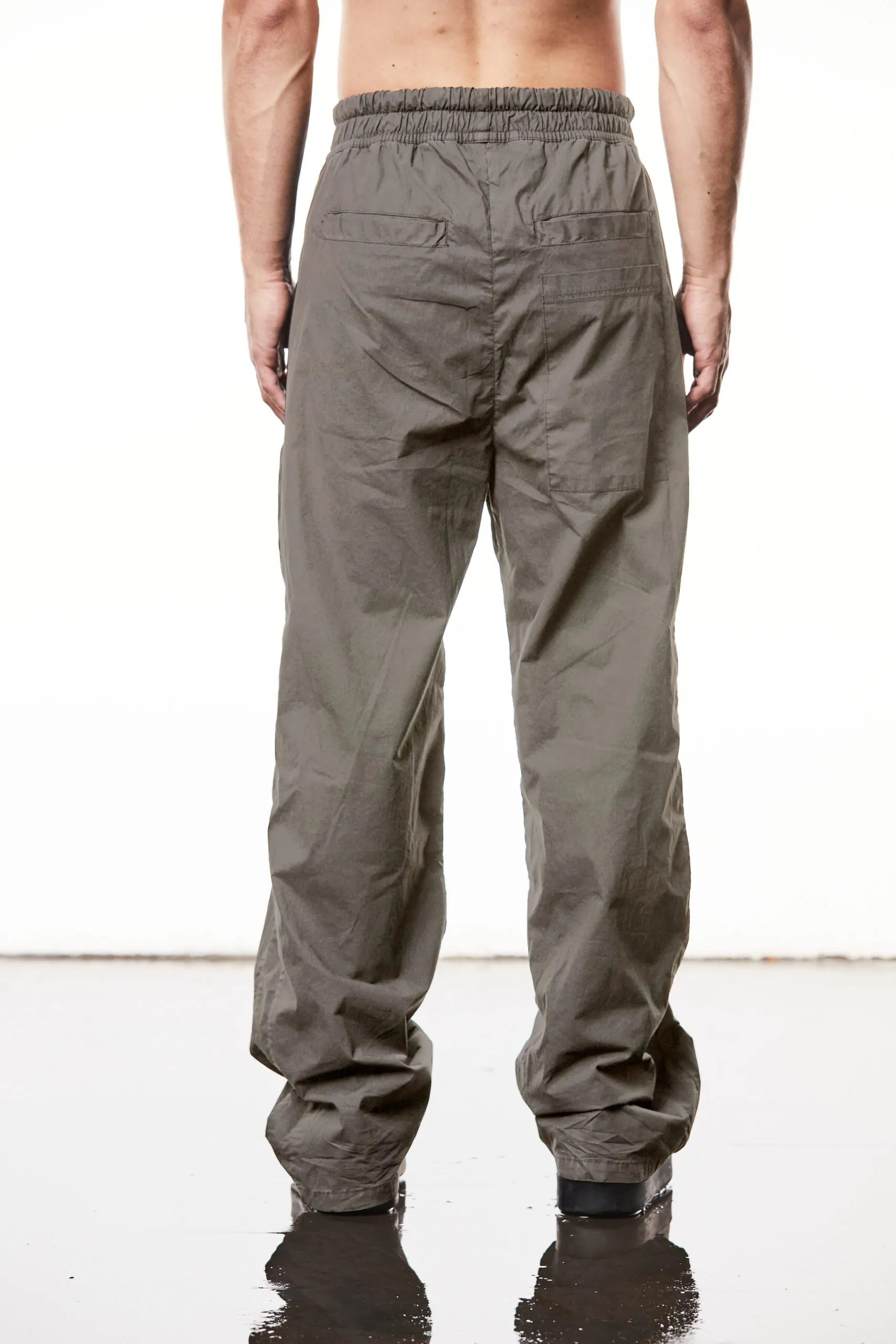 מכנסי רגל רחבה עם מותן גמיש ושרוך קשירה, עשויים מבד כותנה מעובד למראה שטוף ומרוסק. כיסי גב כפולים – אחד עם דש ואחד עם פתיחה כפולה, כולל כיס פנימי נסתר לנוחות ובטיחות.