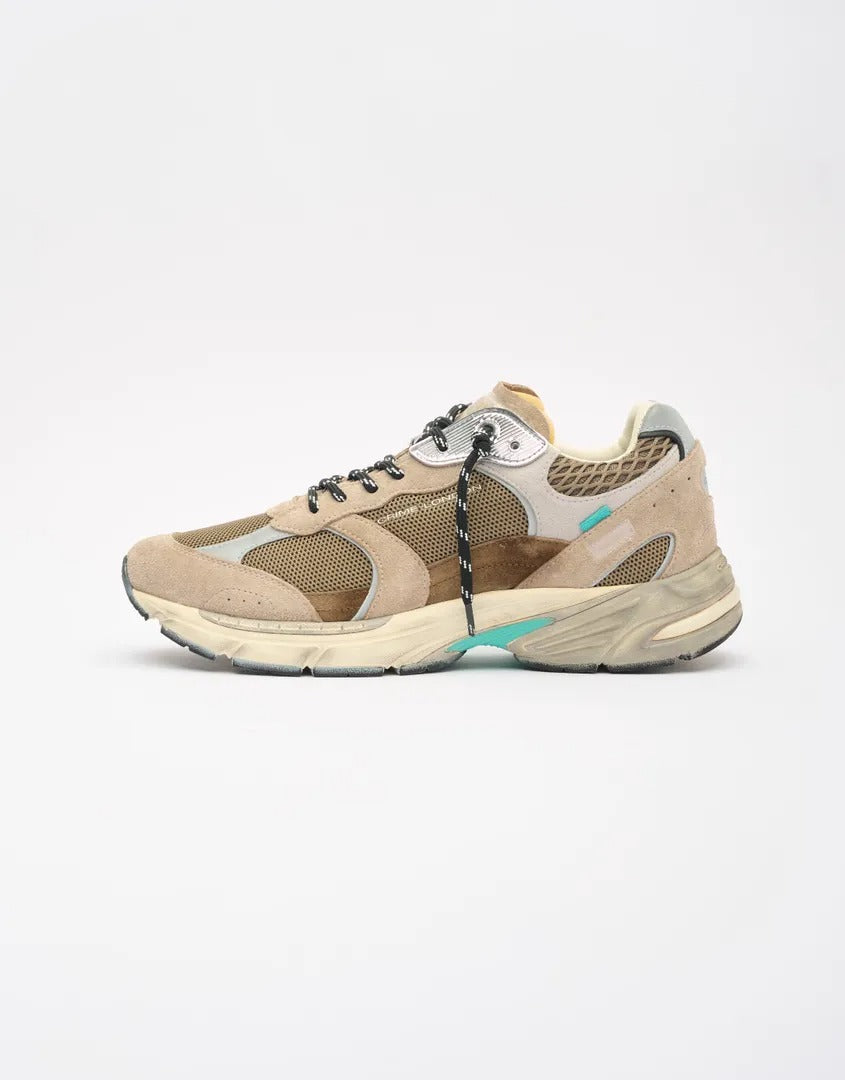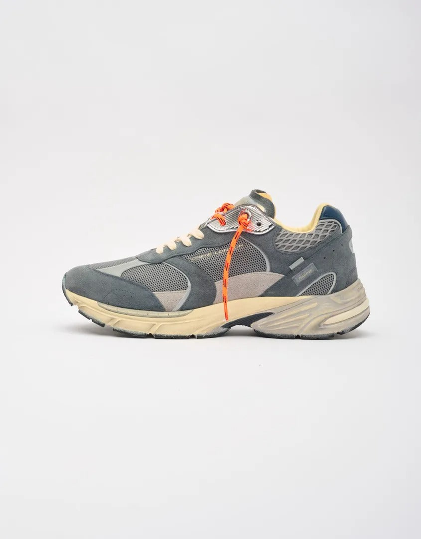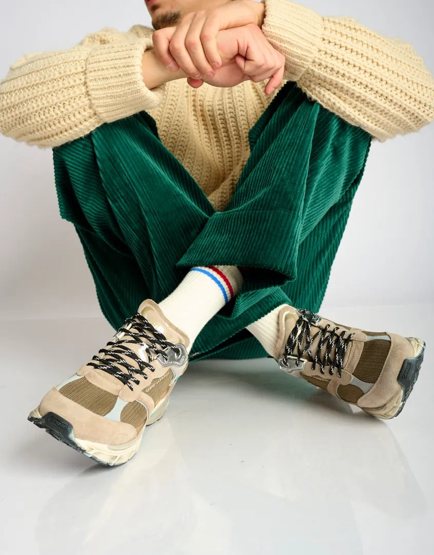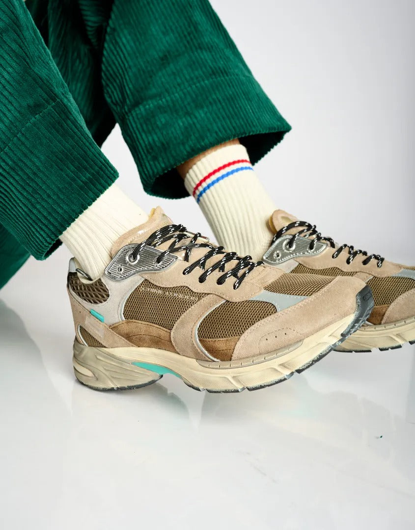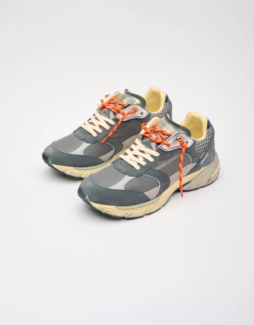הסניקרס במראה יוזד, עשויות שילוב של עור ובד עם גימור משופשף בליט אין.