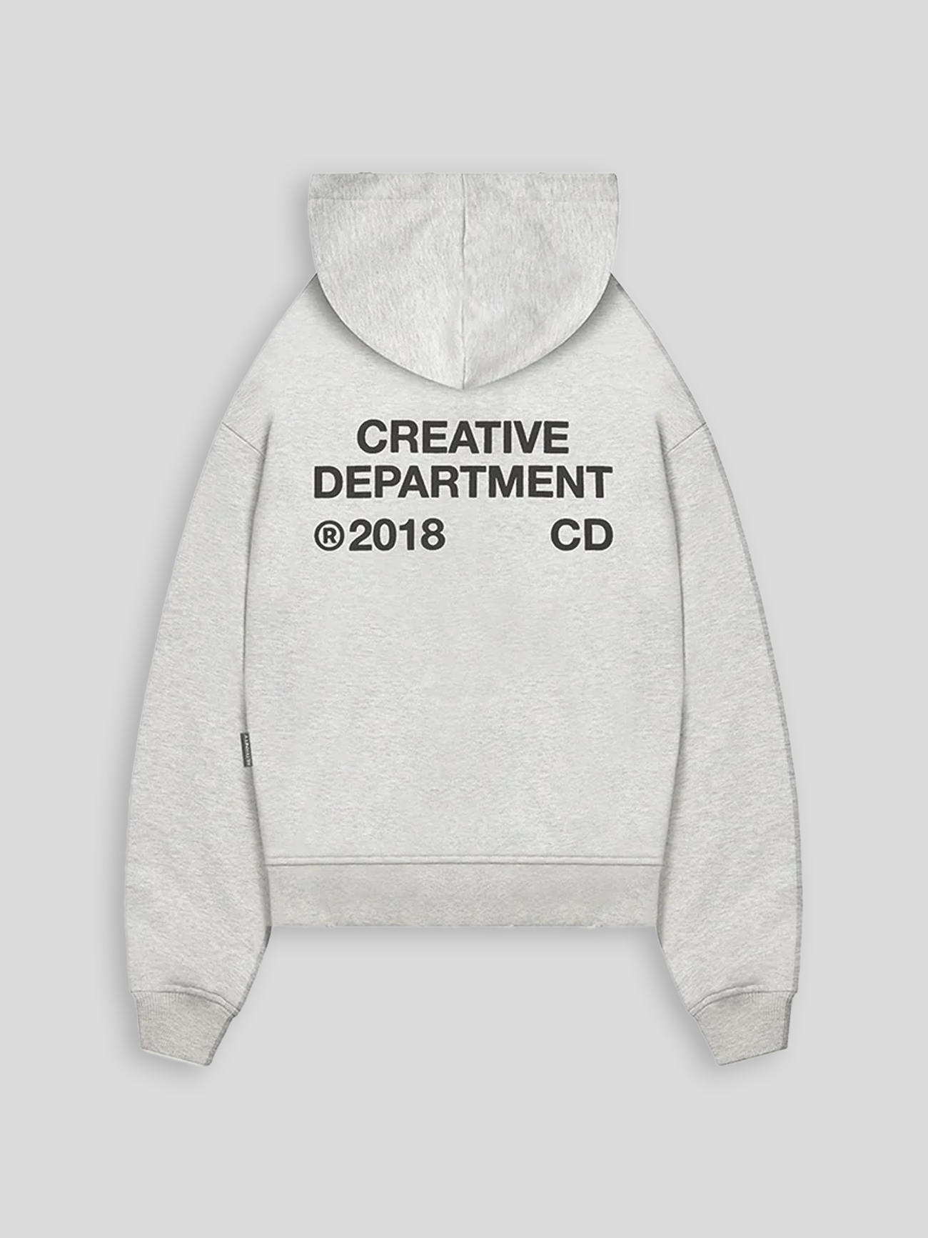 The Creative Department Hoodie, made of a soft melange fabric. Additionally, a white print on the chest & back as well as handmade destroyed effects add a touch of sophistication, made for Creative Department members.