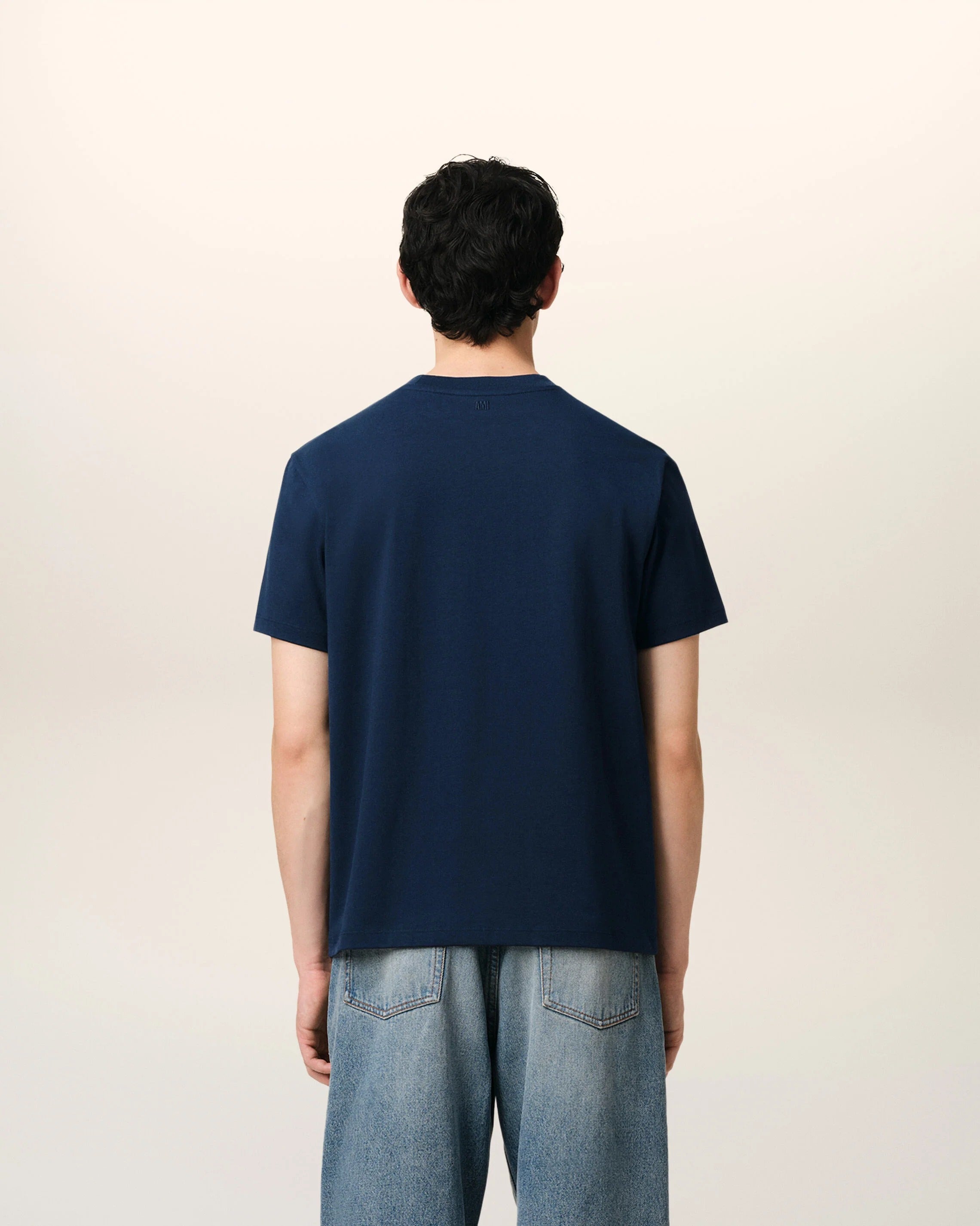 Tonal "AMI" embroidery under back neckline