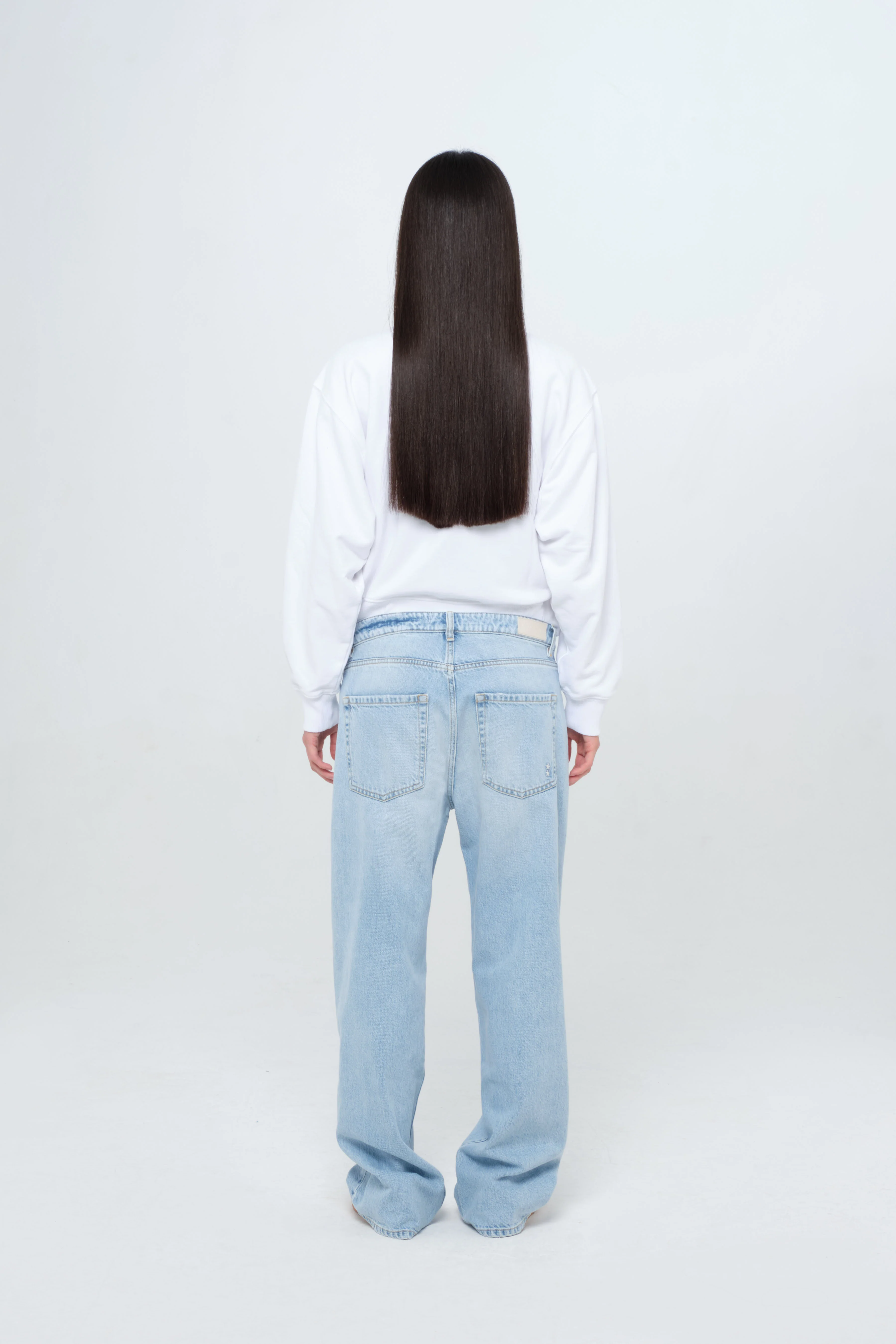 ג’ינס בגזרת רגל רחבה, עשוי מ-100% כותנה קשיחה (Rigid Denim), לנוכחות מדויקת בכל הופעה.