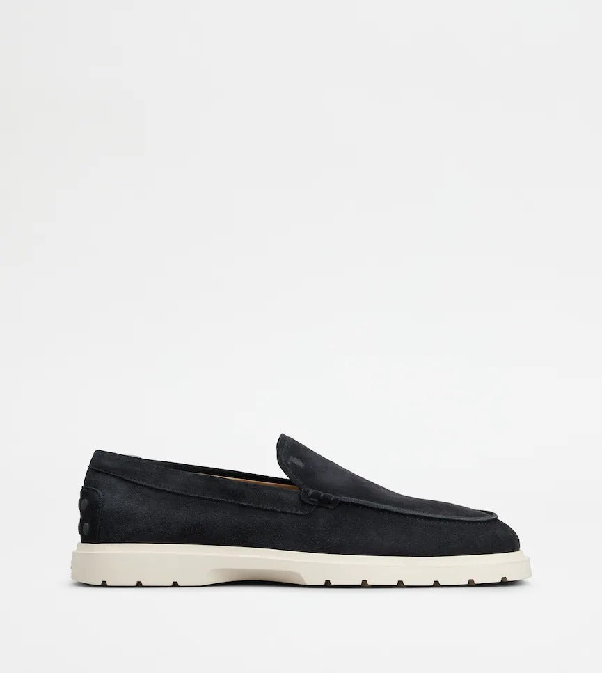Loafers in slipper version, crafted in rich suede, with Tod's monogram stamped on the front. Featuring a rubber outsole with grooving and embossed rubber pebbles, they are an informal and relaxed mood style, enhanced by the iconic rubber pebbles on the heel.