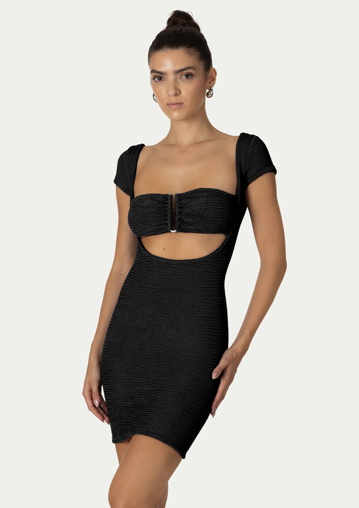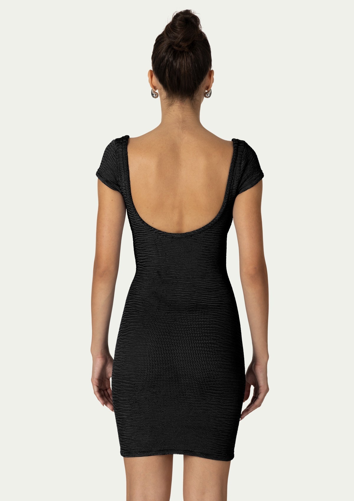 MIKA one-piece swimsuit in navy blue. Strapless cut with a deep neckline and a subtle inner hoop to accentuate the cleavage. Open back with two thin straps for stability and support. Shape-shaping elastic fabric suitable for sizes XS–2XL, supports and flatters a natural bust – small or full. An elegant combination of comfort, support and shape-shaping design.