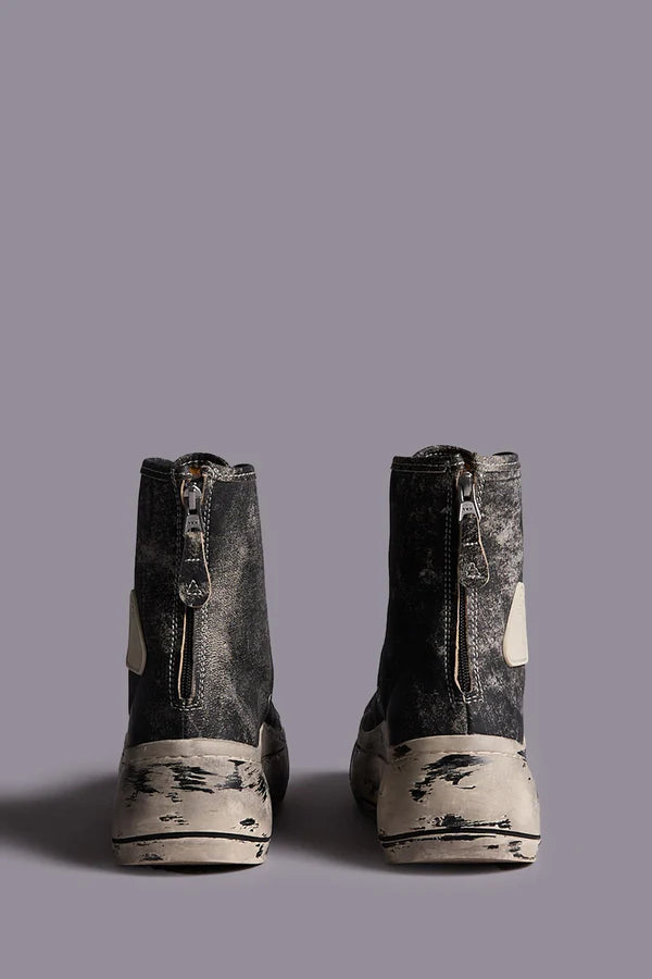 A twist on R13's iconic Kurt High Top Sneaker, featuring an extended top and a distressed leather construction.