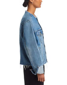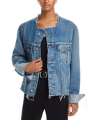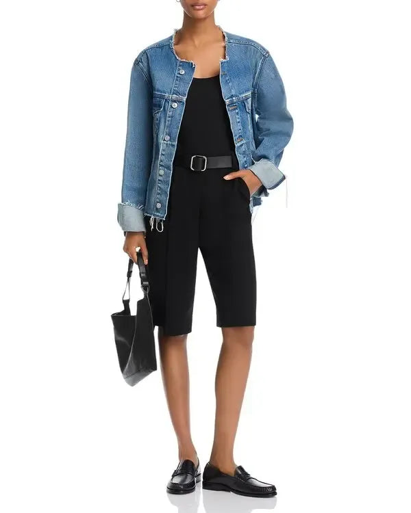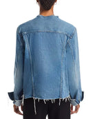 This Re/Done trucker jacket is a classic denim jacket. The jacket features a cutoff design, a collared neckline and a button closure. It is crafted from cotton with a polyester/cotton lining.