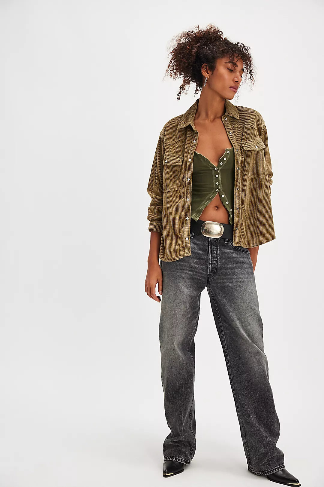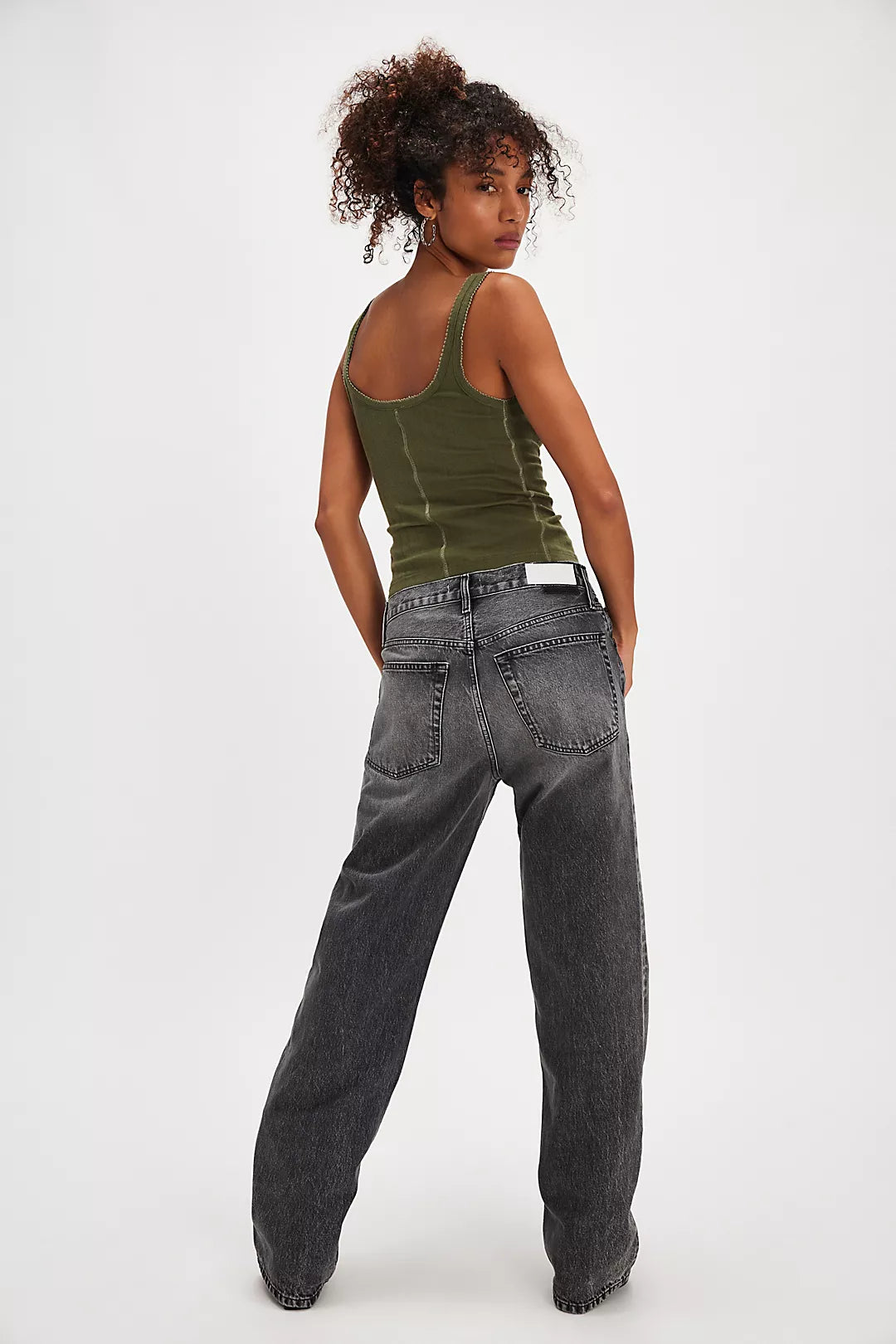 Low-rise, straight-leg jeans in hard denim with a distressed look. Featuring a zipper and button closure, five pockets, and a natural abrasion pattern throughout.