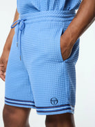 Effortless polish with a textured twist. The Chiaro Cabana Short is crafted from a premium woven waffle for soft texture and laid-back structure. Topped with an elasticated drawstring waistband for a secure fit, these shorts are finished with contrast stripe taping at the hem and rear pocket for a signature sport-inspired touch.
