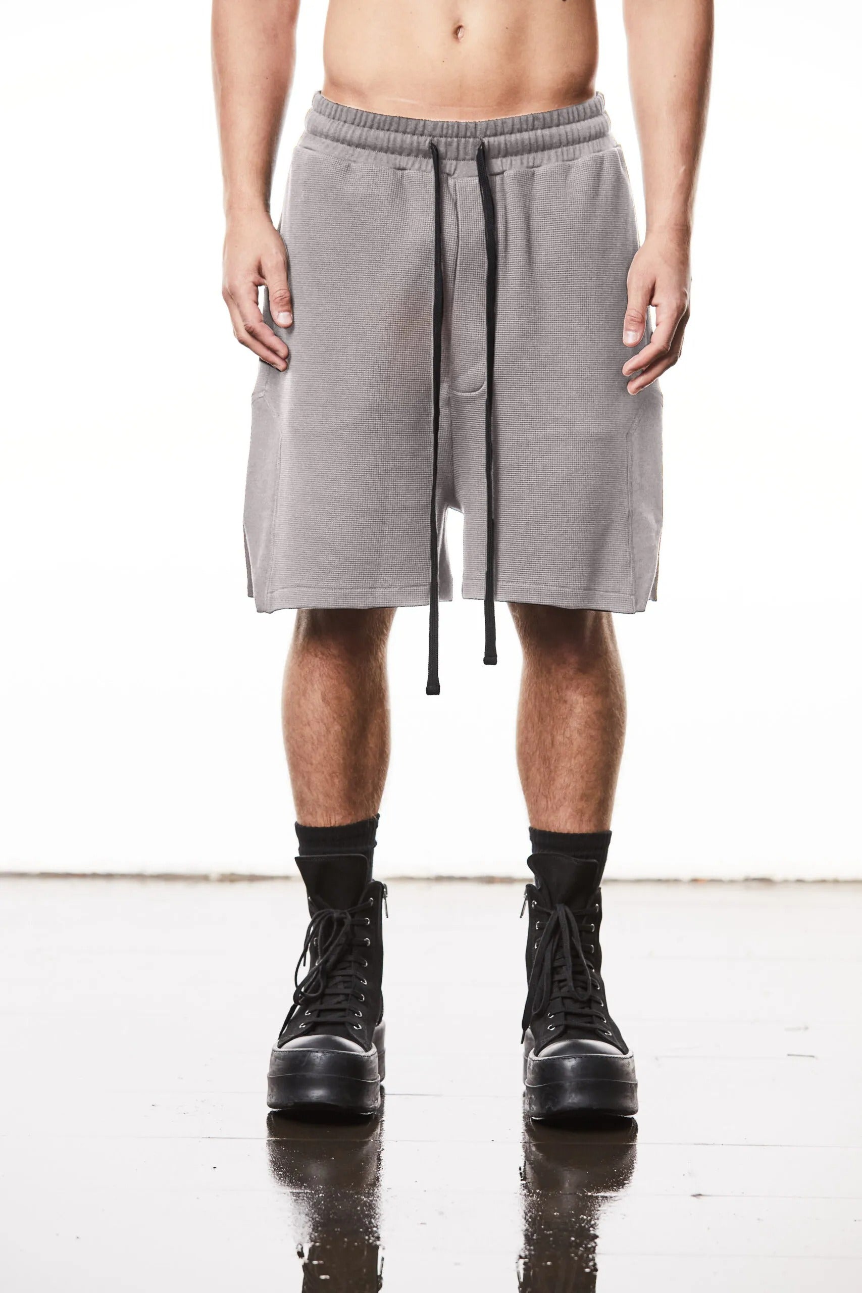 Soft jersey shorts with a tailored construction, combined with lightweight cotton fabric overlays for a sense of depth and a distinctive design. Elastic waist with drawstring and hidden inner pocket for safety and comfort.