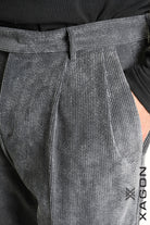 Stretch wide fit trousers - Velvet - Pockets - Coulisse - Pinces